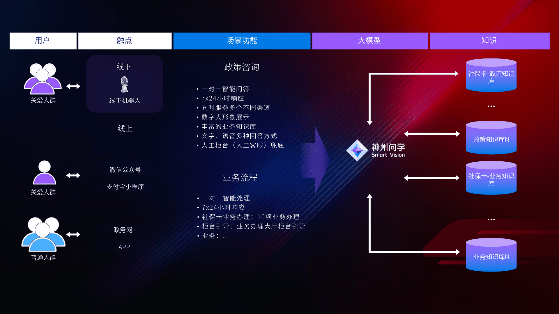 • 线上线下全覆盖:线上提供微信公众号、、、支付宝小程序、、、政务网、、app多种渠道,,,与线下机器人形成完整服务体系。。